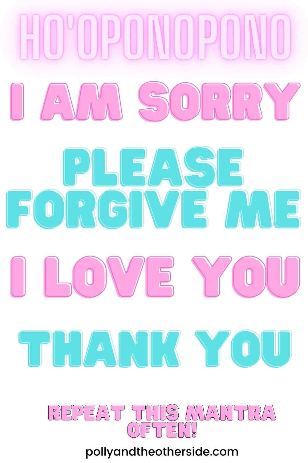 We repeat the Ho'oponopono mantra: I am sorry, please forgive me, I love you, thank you as many times as we need to while visualizing the person or situation.